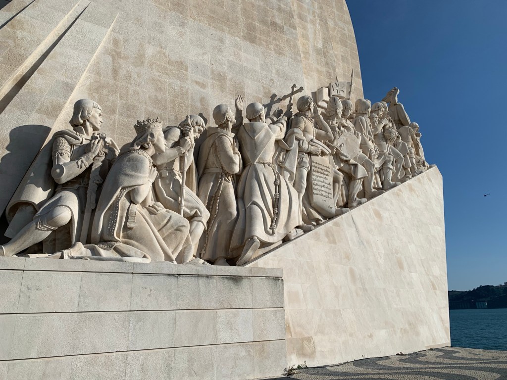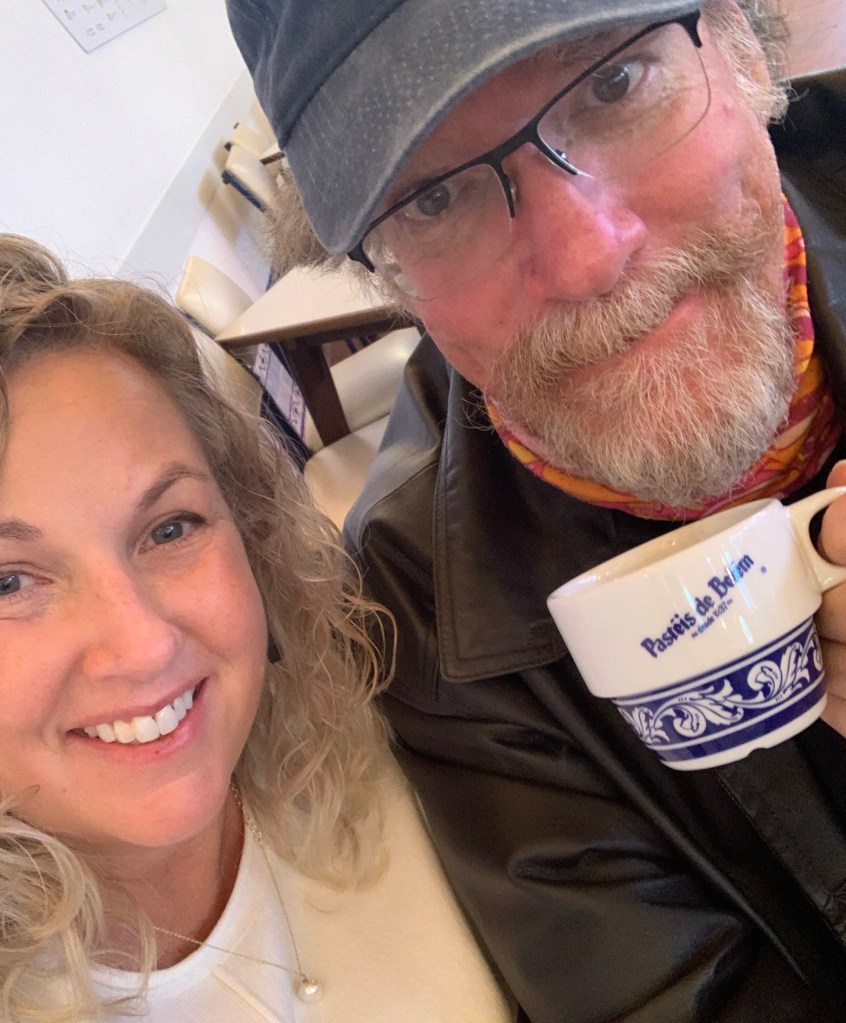 Trying to pretend that I needed a reason besides pastry to make a decision about what to do on our trip, I looked into what else Belém has to offer. It looked like a really cool place to see, right on the water with some historical sights and monuments and the like. So, the decision was made and so our second morning in Lisbon, we grabbed an Uber for the 15 minute ride to Pastéis de Belém. Expecting to stand in a line when we got there, we were pleased that we could be seated right away. The restaurant is huge, and I was a little intimidated when the hostess gave us vague directions to take any table in the back, toward the right. Sounds simple, but the back on the right was through a couple small dining rooms and down a short hallway. We found it and sat down and decided to have brunch while we were there. We chose several small offerings from the menu of different pastries filled with various meats and cheese and of course, ordered Pastéis De Belém for dessert (and also a few to take with us when we left). The descriptions we’d read and heard were accurate and the little treats did not disappoint. The pastry reminded me a little of phyllo pastry and the custard was creamy and delicious, with just the right amount of sweetness. I was hooked. I’m pretty sure David was, too. Yummy, yummy, yummy.