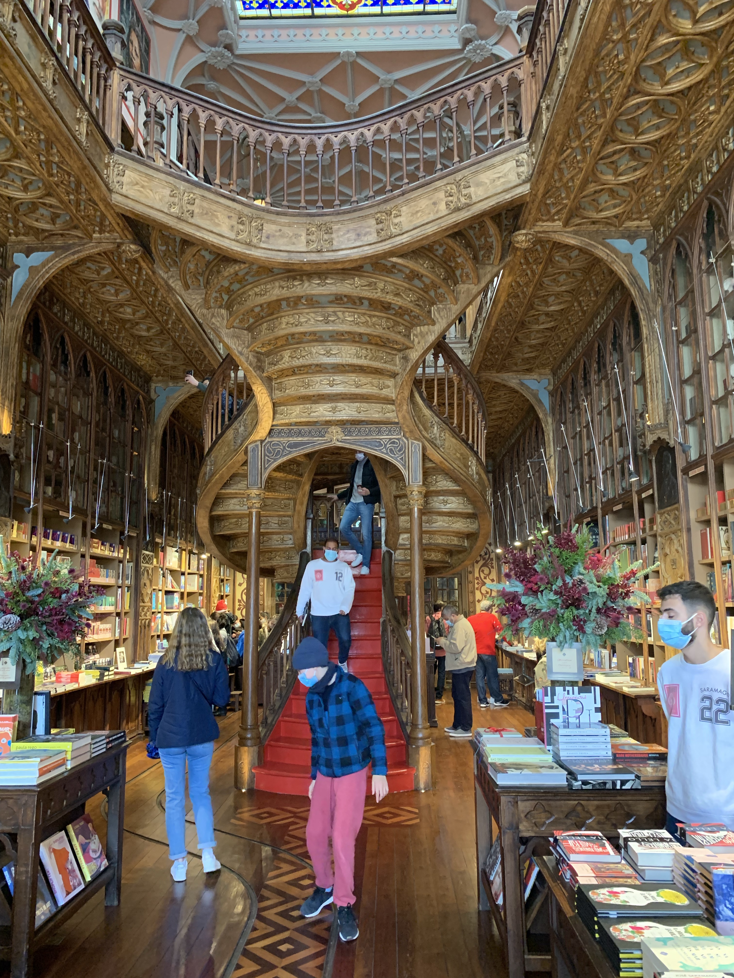 The next day, the sun was shining from behind scattered clouds, and we were excited to do some exploring. The property manager had given us a map of the area and assured us that it was a small city, great for walking, so we laced up our sneakers and off we went. I’d mentioned to David that I wanted to see Livraria Lelle, the bookshop that had been the inspiration for the library at Hogwarts and we headed in that direction. Along the way, we saw some truly beautiful buildings covered in tiles. I’d read, of course, about these tile covered buildings and seen a few in Lisbon, but I was still taken in by them. The colors are eye catching and the details are truly astounding.