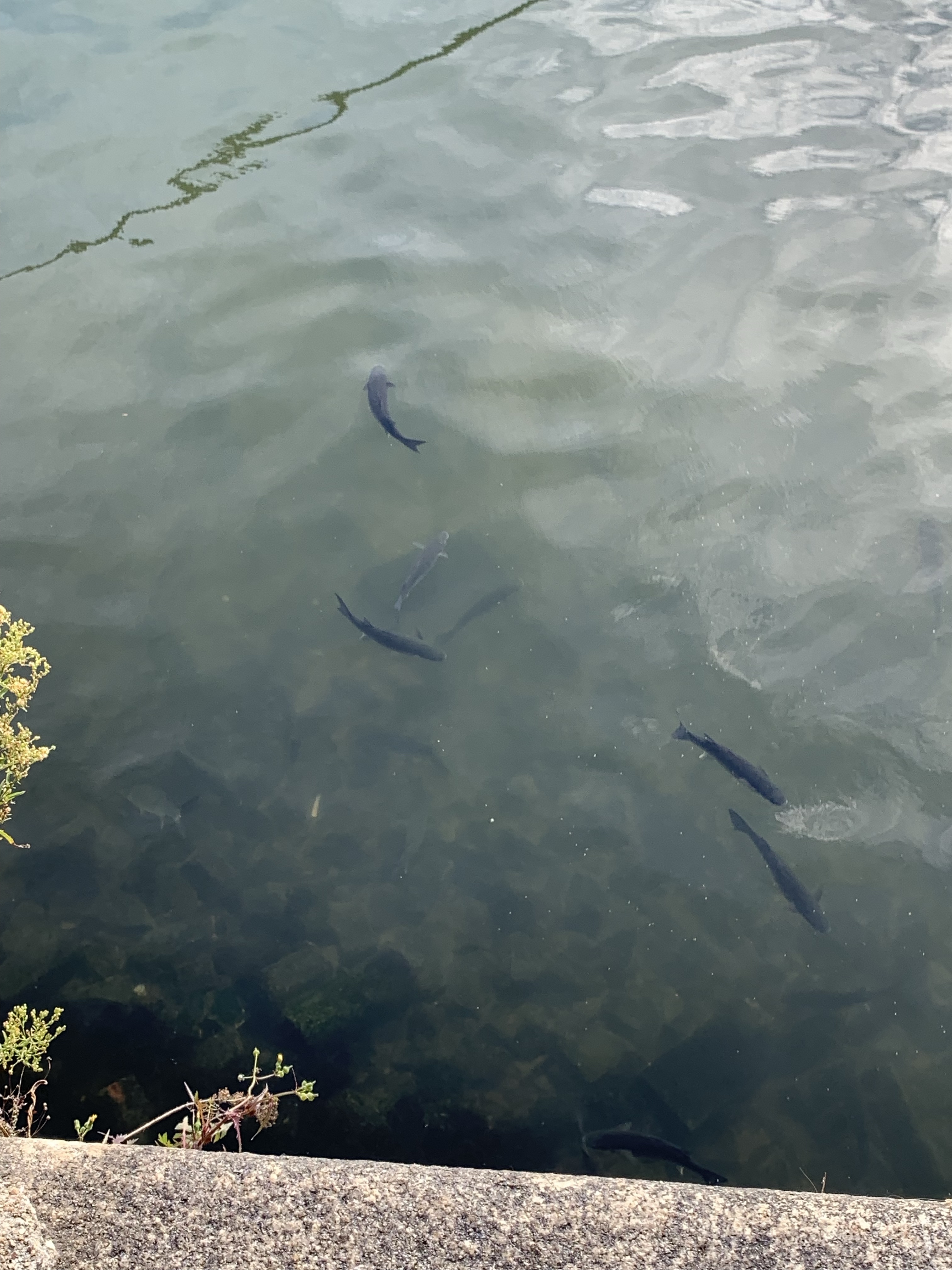 Not surprisingly, our short jaunt did indeed deliver us to the waterfront, which provided an enchanting welcome. People meandered along the sidewalk or dined in one of the many outdoor restaurants, enjoying the fabulous weather and atmosphere of this lovely place. A musician played the guitar and sang, adding yet another delight for the senses. We strolled along, stopping to look at the boats and fish in the water, and the bridge just slightly off in the distance. Across the river we could see a couple of the wineries that we’d heard about and I was excited that we planned to visit one of them later in the day.