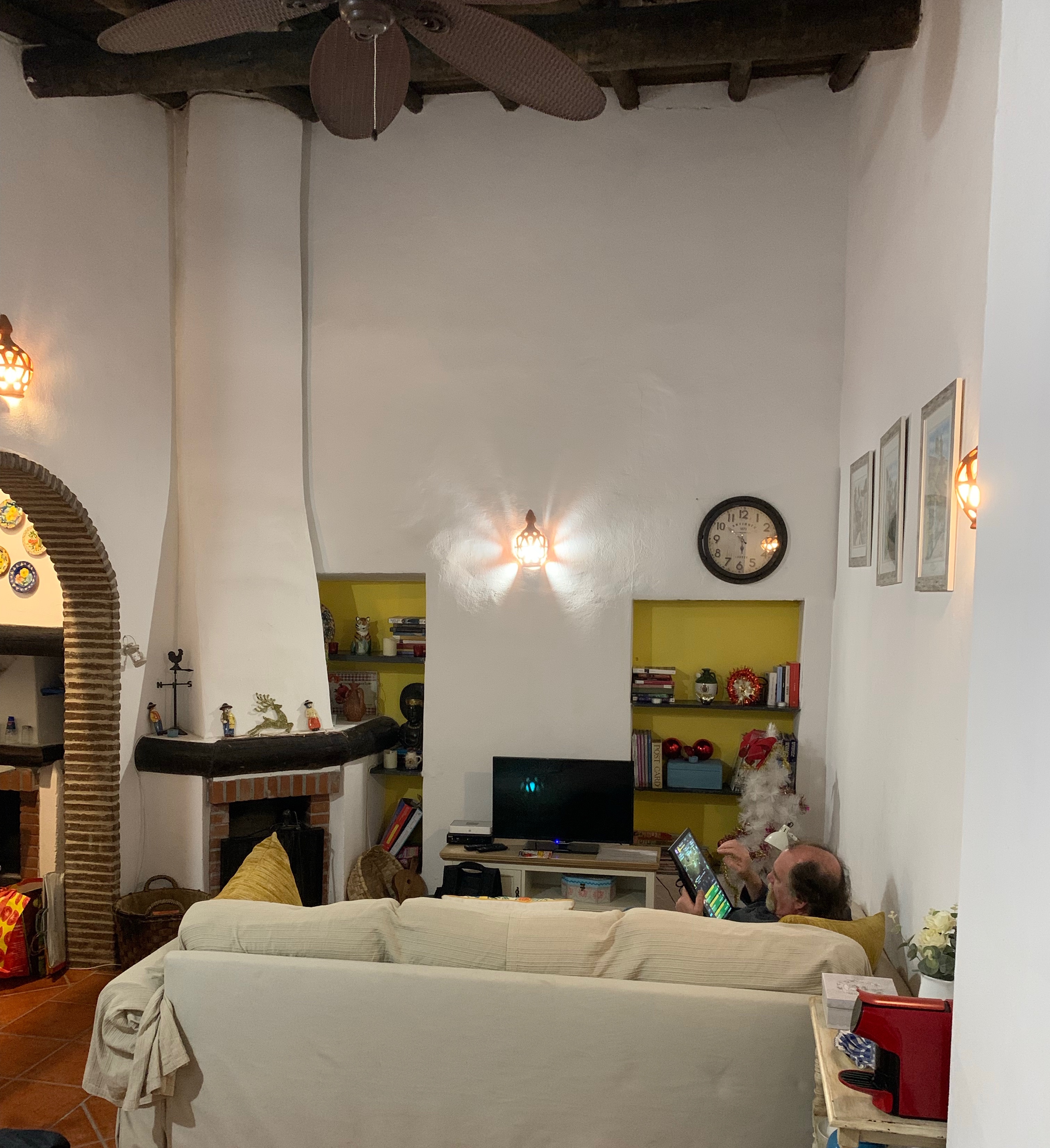 What a surprise when we went in, though. The house was much bigger than it appeared from outside and it was simply charming. The decor looked a little cluttered in the pics we’d seen on VRBO, but the effect when there was perfect. Books and trinkets graced the shelves and created an old-world charm. The kitchen was tiny, but well equipped and the rest of the house seemed to invite lying around and cozying up, as if at home.